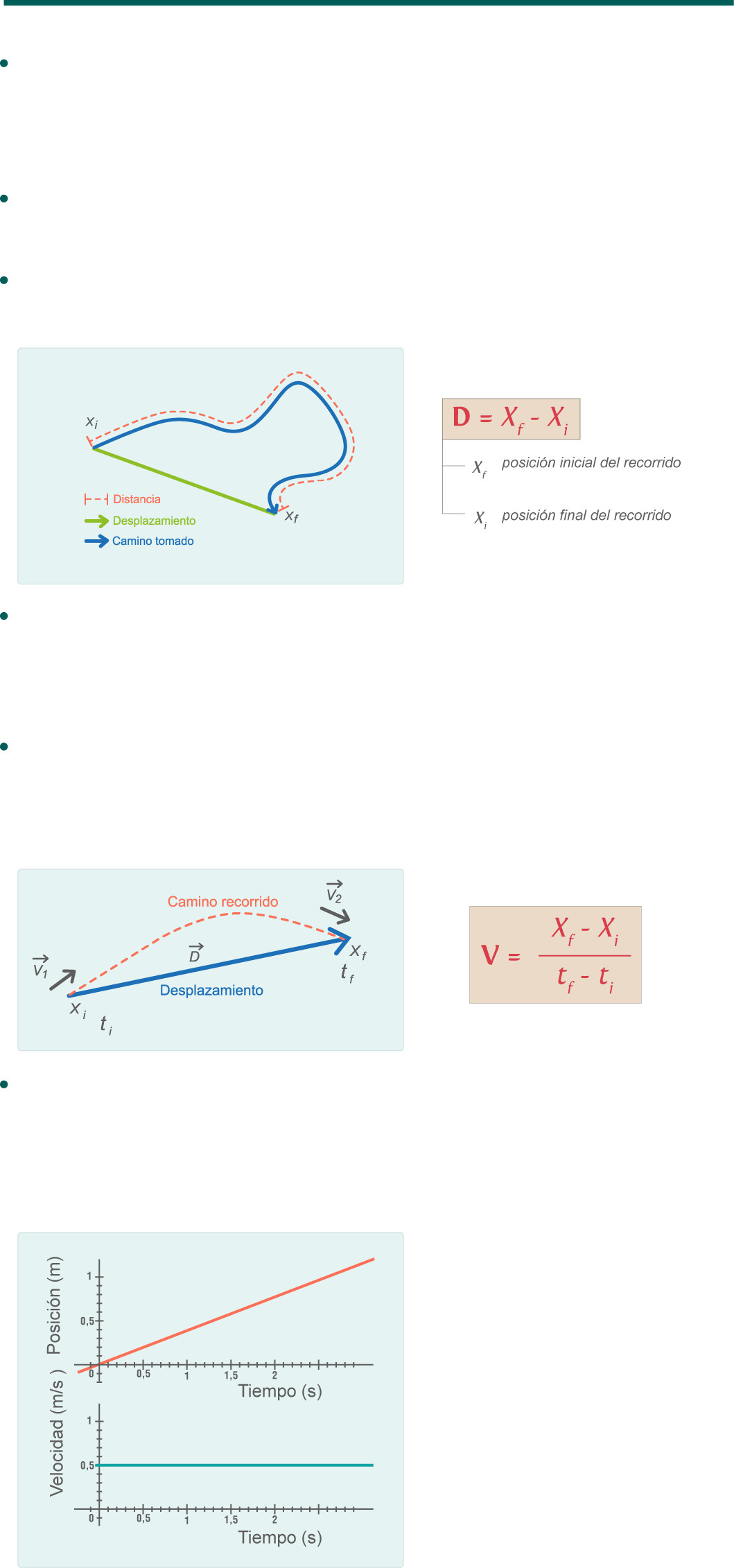 Desplazamiento: es una magnitud vectorial, se calcula como la distancia entre la posición inicial y la posición final del recorrido del móvil.
