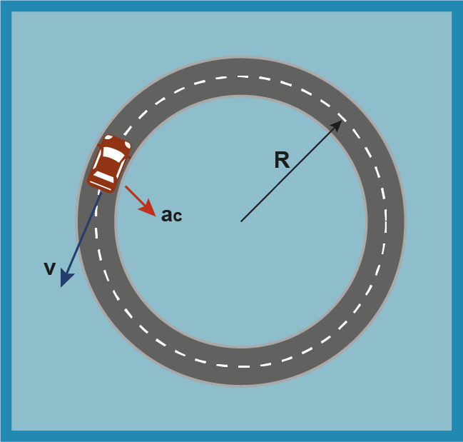 El carro representa una partícula, y la pista puede ser una rueda de bicicleta que gira con movimiento circular uniforme.Se calcula a partir de: