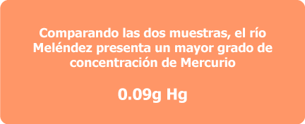Teniendo en cuenta la anterior información, define la fracción másica para cada una de las muestras tomadas de ambos ríos. (densidad del mercurio 13.55 g/cm3)