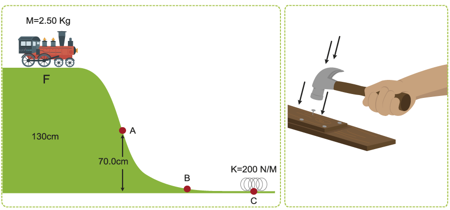 Analiza estas otras situaciones representadas a través de las siguientes imágenes, enfocando tu atención sobre todo en los diferentes cambios energéticos durante las etapas del movimiento, desde las condiciones iniciales, durante y objetivo final.