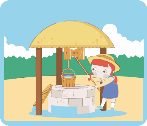 ¡Correcto!La niña ejerce la fuerza sobre la cuerda que hala el balde.
